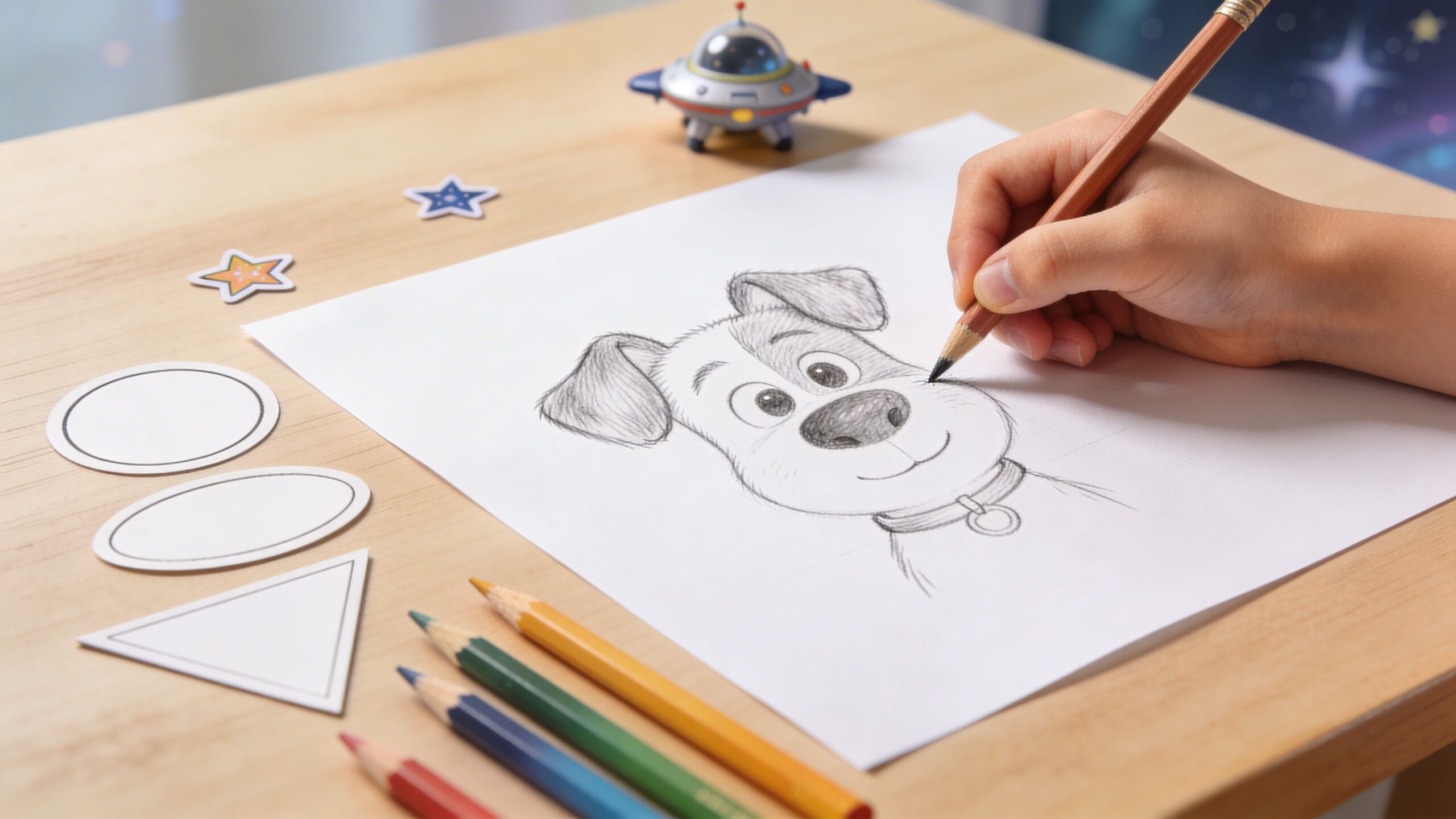 If your young artist loves space adventures, even better. A cartoon dog can become a brave sidekick, a moon rover pup, or the captain of a biscuit-powered rocket. Drawing stops feeling like practice and starts feeling like a mission.